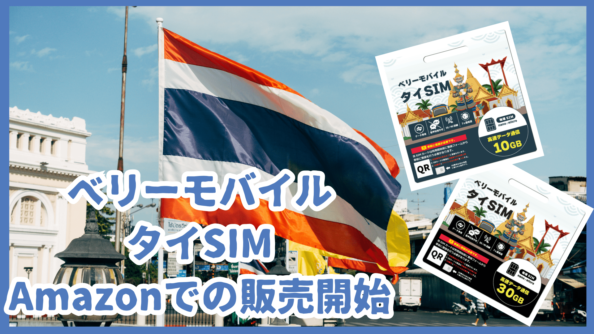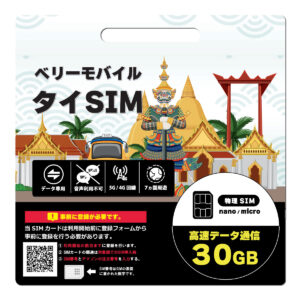 この度、タイで利用いただけるプリペイドSIM「ベリーモバイルタイSIM」が 日本のAmazon での販売を開始いたしました!ご利用可能日数は30日間、高速データ容量は10GBと30GBの2種類をラインナップしています。
