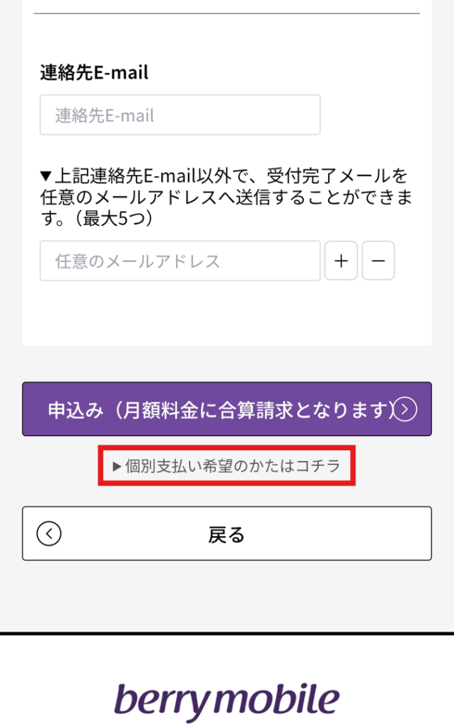 ✅ベリーモバイルに登録したメールアドレスではない