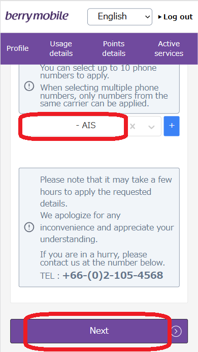 STEP6: เลือกหมายเลขโทรศัพท์ที่ต้องการใช้บริการ