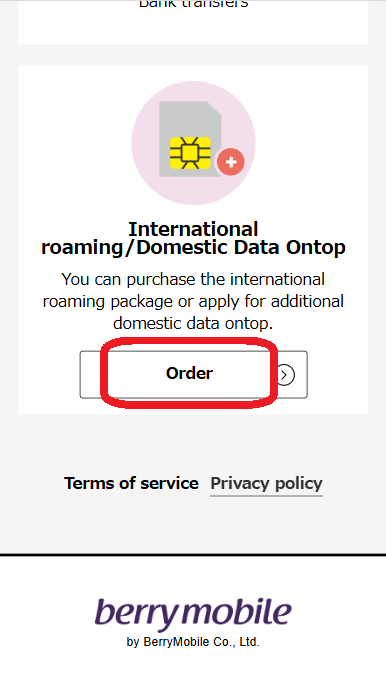 STEP4: เลือก「International roaming/Domestic Data Ontop 」→「Order」